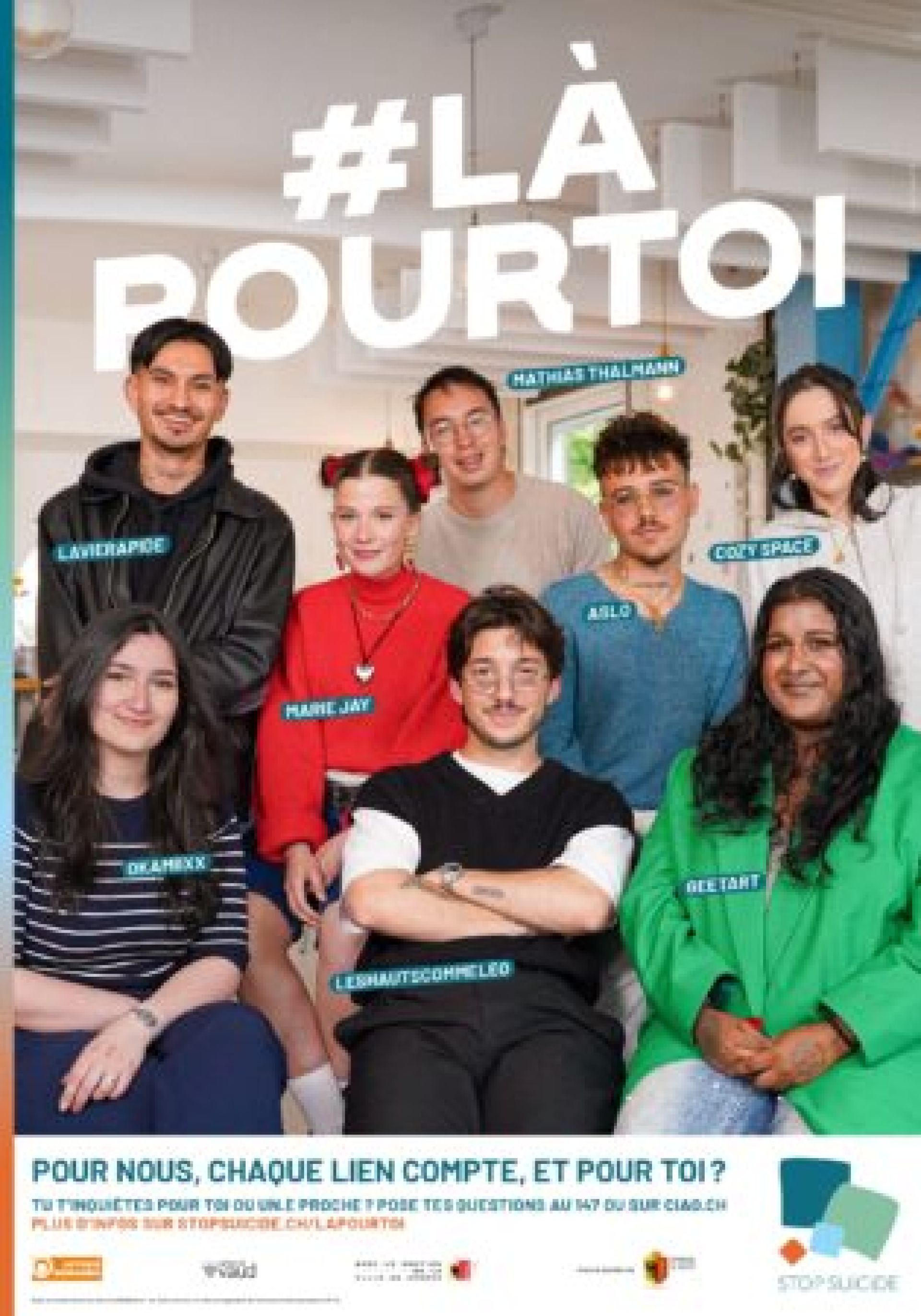 Le 10 septembre 2024, à l'occasion de la Journée mondiale de prévention du suicide, STOP SUICIDE a lancé sa campagne #LÀPOURTOI pour rappeler que tout le monde peut agir.